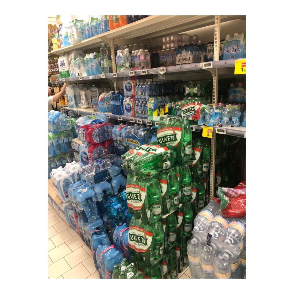 Your humble essayist was seated in a café in the back-lane of Naples that serves sweet, hot, shots of caffeine when a lightbulb revelation struck. This haphazard adventure is opening my eyes to a Europe-wide scam of boggling proportions. It may be larger than all mafias combined. It’s the Great European Bottled Water Racket (GEBWR). Suspicion in the quality of tap water unnerves the public and fuels the unnecessary consumption of millions of bottles of H2O. Delivery trucks ferry the cargo round the clock, blocking roads and parking wherever they please. Supermarket aisles struggle to contain the product. Cafes and restaurants automatically put a bottle on your table. Garbage bins overflow with discarded plastic containers. Are plumbing networks really that deficient? Has water quality been recently tested by a credible scientific body? Has nobody heard of purifiers that can be attached to faucets? Is the entire continent being conned in a massive multi-billion dollar deception?